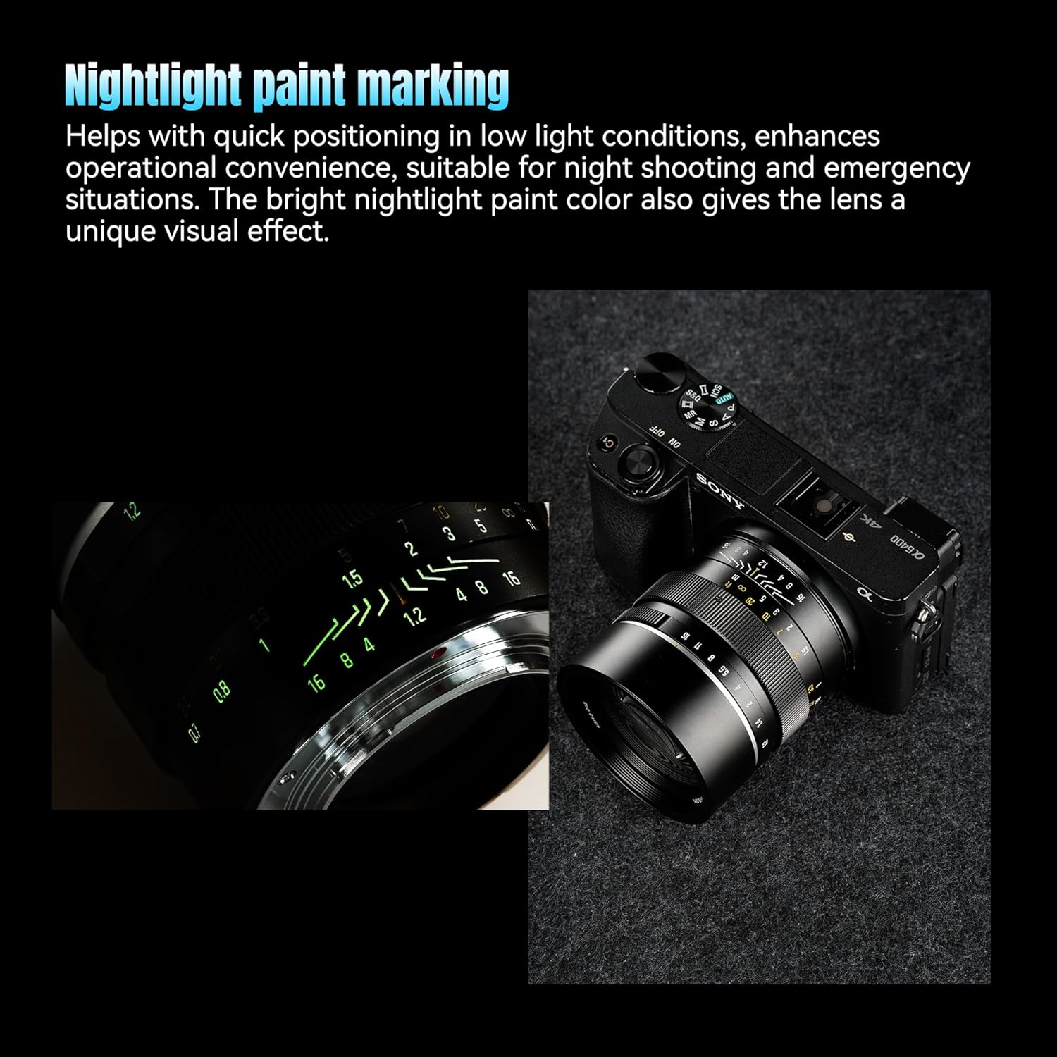 Ora, infatti, anche il nuovo obiettivo 7artisans 50mm F1.2 APS-C si aggiunge alla lista delle ottiche che si vedono al buio, grazie alle scritte fosforescenti sul barilotto, che permettono di avere migliore controllo di quest’ottica manuale anche in condizioni di scarsa illuminazione ambientale.