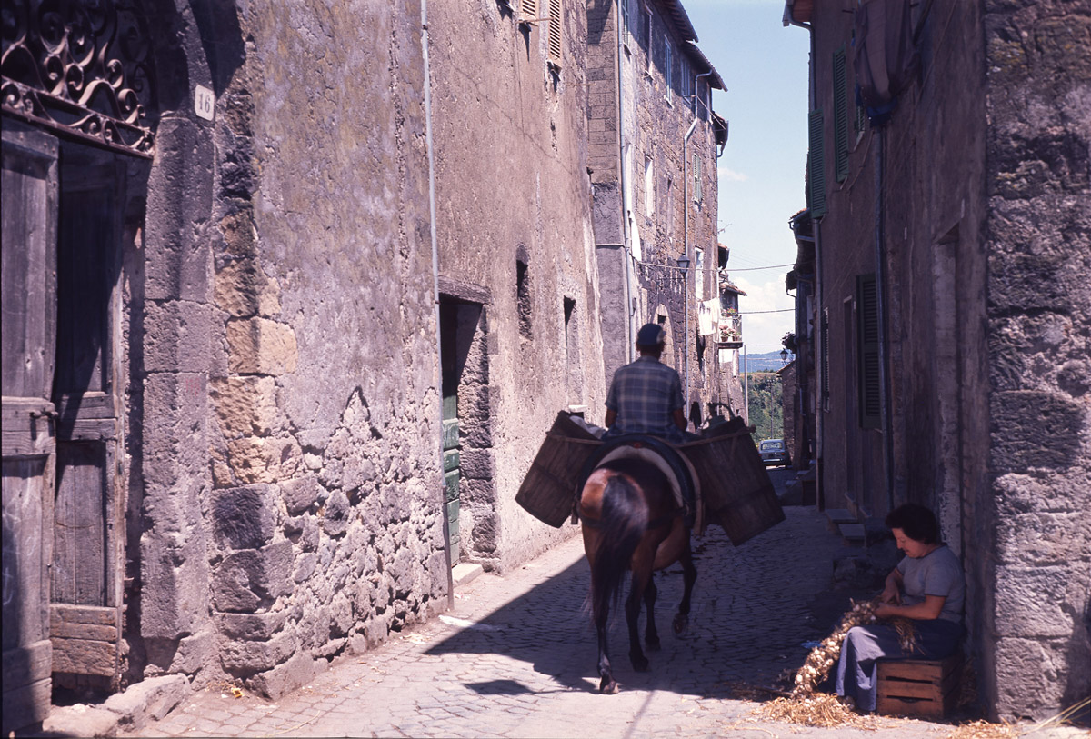 Erano gli anni Cinquanta, la guerra era finita, l’Italia si ricostruiva, iniziava il miracolo economico. Alfredo Regoli (1925- 2017) metteva in moto la sua Gilera 125, infilava la fotocamera in una borsa e si lanciava in un’appassionata esplorazione dei paesi di Lazio, Umbria e Toscana. Scattava fotografie ai paesaggi, ai monumenti, ai gesti quotidiani nelle piazze, nelle strade e nei vicoli più sperduti.
