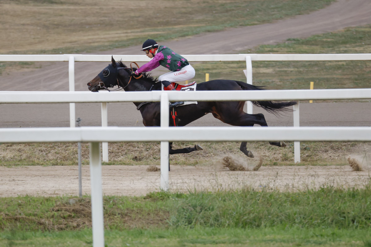 Passando dal campo di calcio alla pista dell’ippodromo delle Capannelle, abbiamo configurato la mirrorless per il riconoscimento del soggetto umano (volto + occhi). La Eos R5 Mark II ha identificato immediatamente il fantino in avvicinamento, tracciandone con precisione il volto finché non è stata in grado di rilevarne anche lo sguardo. Da quel momento, l’autofocus si è ancorato a una delle pupille del fantino, rimanendovi saldamente agganciato fino alla sua uscita di scena e mantenendo il tracciamento fin sui bordi estremi del fotogramma. In alto è possibile visionare sia la sequenza degli scatti, sia la registrazione effettuata in diretta dalla fotocamera.
