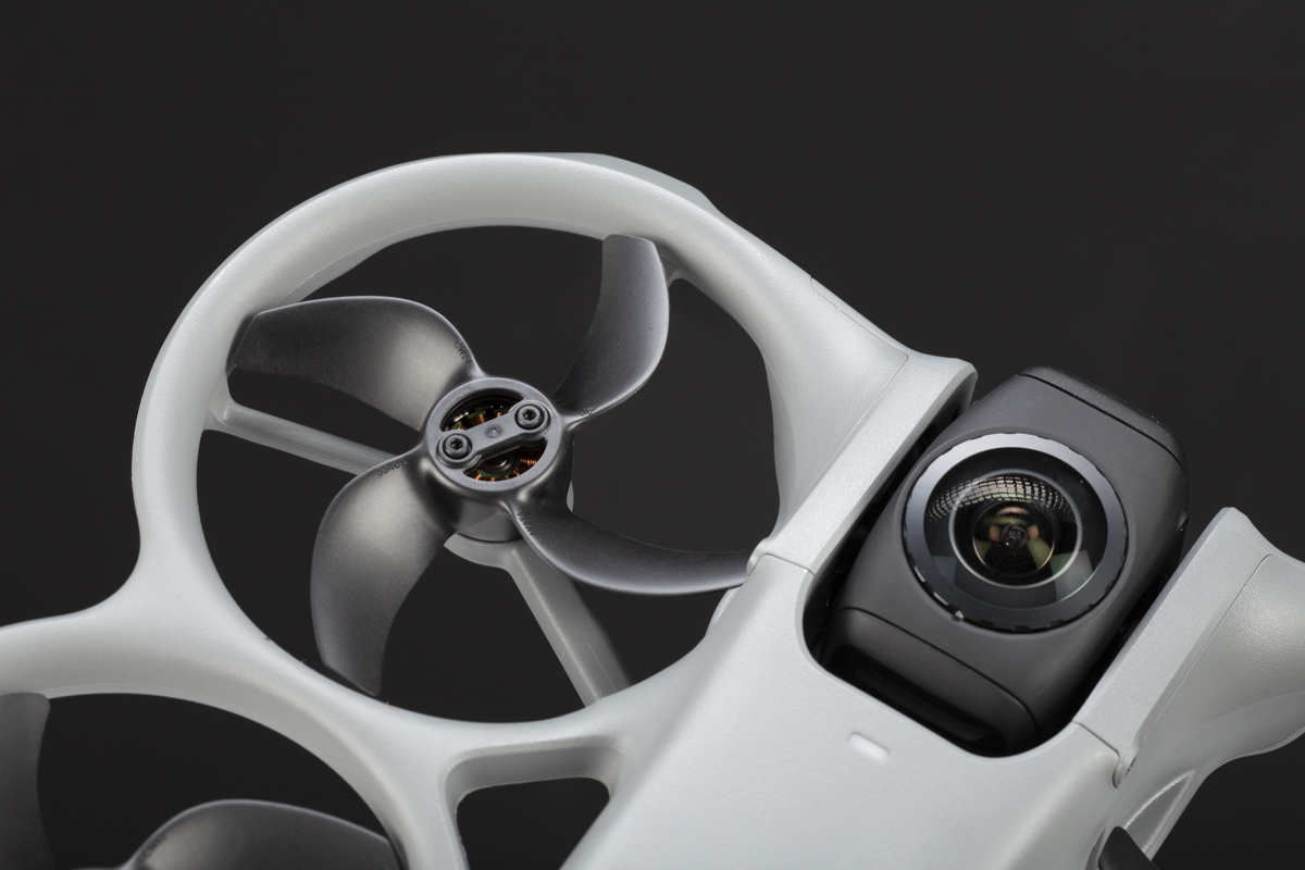 La seconda differenza riguarda le specifiche ottiche. Entrambi i droni montano un doppio modulo fotografico con obiettivi contrapposti, ma con caratteristiche sensibilmente diverse. L’A1 sfrutta sensori da 1/1,28″, circa il 26% più piccoli rispetto ai sensori da 1/1,1″ dell’Avata 360. Anche sul fronte della luminosità massima il DJI ha la meglio: apertura f/1,9 contro f/2,2 dell’Insta360. Ma c’è un elemento che distingue l’Avata 360 in modo ancora più netto: l’esclusiva capacità di passare dalla ripresa sferica a quella tradizionale. Merito di un comparto fotografico progettato per ruotare su se stesso, orientando le fotocamere secondo le esigenze del momento. Quando i due obiettivi sono rivolti verso l’alto e il basso, il drone opera in modalità sferica a 360°; quando invece uno guarda in avanti e l’altro inquadra il corpo del drone — disattivandosi di fatto — si ottiene una ripresa tradizionale, analoga a quella di un qualsiasi drone. Una versatilità che l’Antigravity A1 non offre.