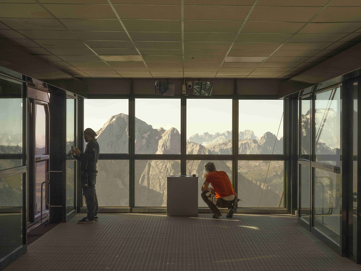 Sono in mostra quarantacinque scatti di Manuel Cicchetti, il cui sguardo attento e rispettoso coglie non solo la grandiosità dei panorami dolomitici, ma anche i segni della presenza umana: un sentiero scavato nella roccia, un’abitazione incastonata nella valle, una strada di alta montagna.