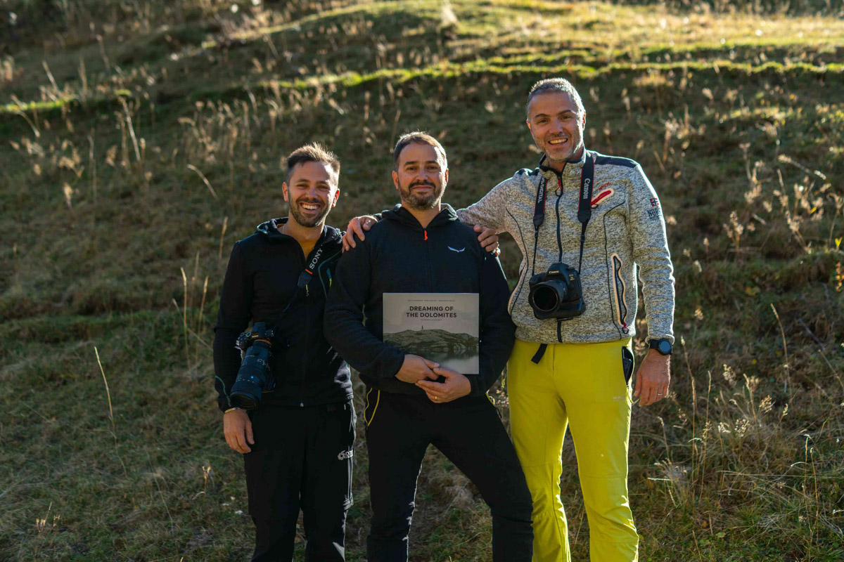 Conosciutisi proprio mentre scattavano fotografie di paesaggio nelle loro zone d’origine, circa quindici anni fa, i tre fotografi parmigiani si sono subito scoperti “sognatori di Dolomiti”. Appassionati e affiatati hanno iniziato a viaggiare insieme per esplorare le suggestive montagne dei loro desideri con l’ambizione di immortalarne la bellezza.