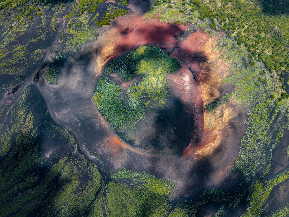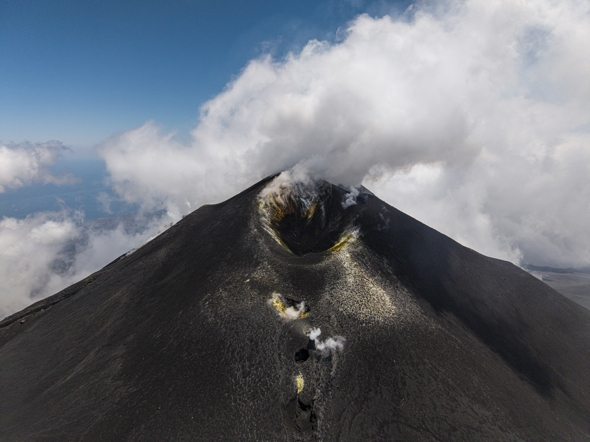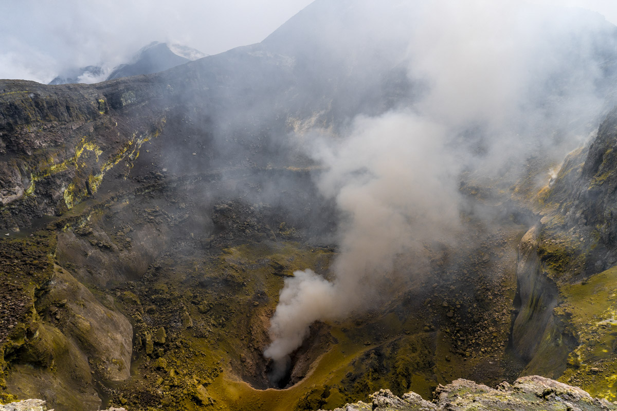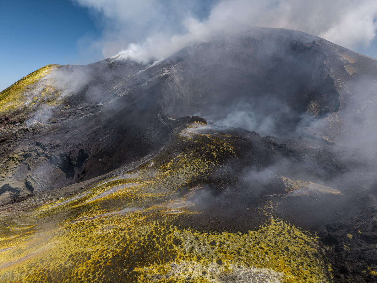 Il fotografo cammina su tappeti di cenere, respira i vapori di zolfo, ascolta il vento, osserva l’incredibile mutevolezza del paesaggio e la cattura in ogni suo dettaglio.