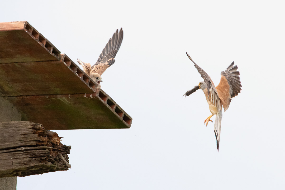 Un maschio di grillaio ritorna al nido con un roditore appena predato. © Luca Eberle