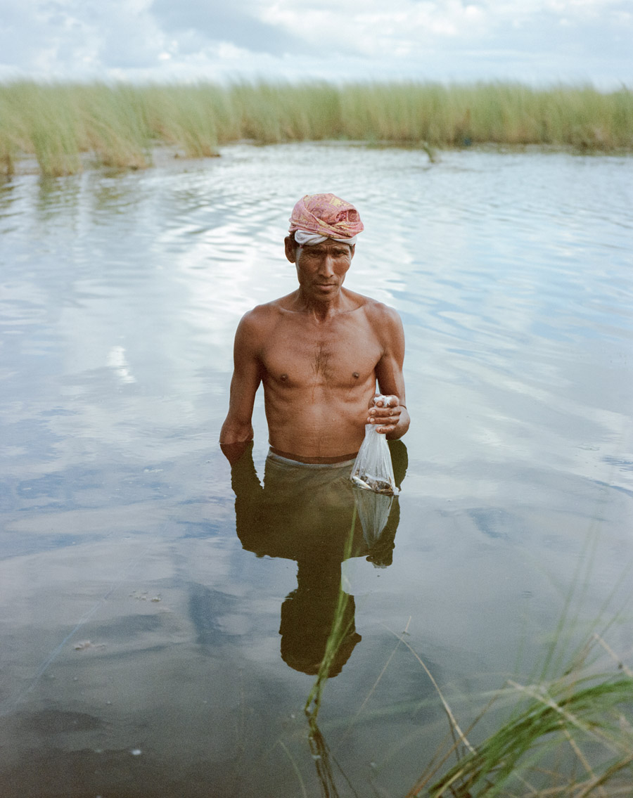 Più a lungo rimanevo, più mi rendevo conto che il progetto doveva concentrarsi anche sulla profonda venerazione fisica, sociale e spirituale che le comunità locali nutrono per il fiume e le sue acque sacre. Ho cercato di trascorrere più tempo possibile con la gente di Majuli, comprendendone le motivazioni e percependo sia le difficoltà che le gioie della loro vita quotidiana. Dagli agricoltori ai pastori di bufali, dai pescatori ai ceramisti, tutti condividevano un legame profondo e intimo con il loro ambiente e il fiume che lo alimenta.