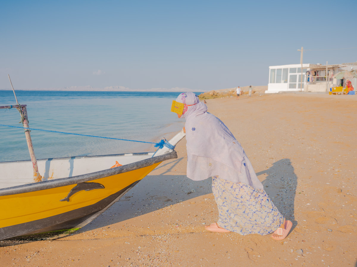 Khadijeh Ghodsinejad, una donna sposata di 26 anni con un bambino di due anni, vive sull’isola di Hengam ed è la pescatrice più giovane della comunità. Conosciuta su Instagram come Khajoo, ha iniziato ad accompagnare sua madre nelle battute di pesca in barca a remi già all’età di quattro o cinque anni. Oggi hanno una barca a motore, che ha reso il loro lavoro più facile, ma lei continua a pescare spesso insieme alla madre. Negli ultimi tempi, molti giovani hanno evitato il lavoro faticoso e l’odore sgradevole del pesce, rendendo Khajoo l’unica giovane donna che continua a pescare. Lei osserva: “Quando torno dalla pesca, tutti mi dicono di cambiarmi subito i vestiti perché puzzo di pesce!”. Khajoo parla con franchezza delle sfide che deve affrontare: “La scarsità d’acqua, le interruzioni di corrente e la mancanza di medici e strutture mediche adeguate hanno sempre fatto parte della vita sull’isola e sono tra le difficoltà più significative che dobbiamo sopportare”.
