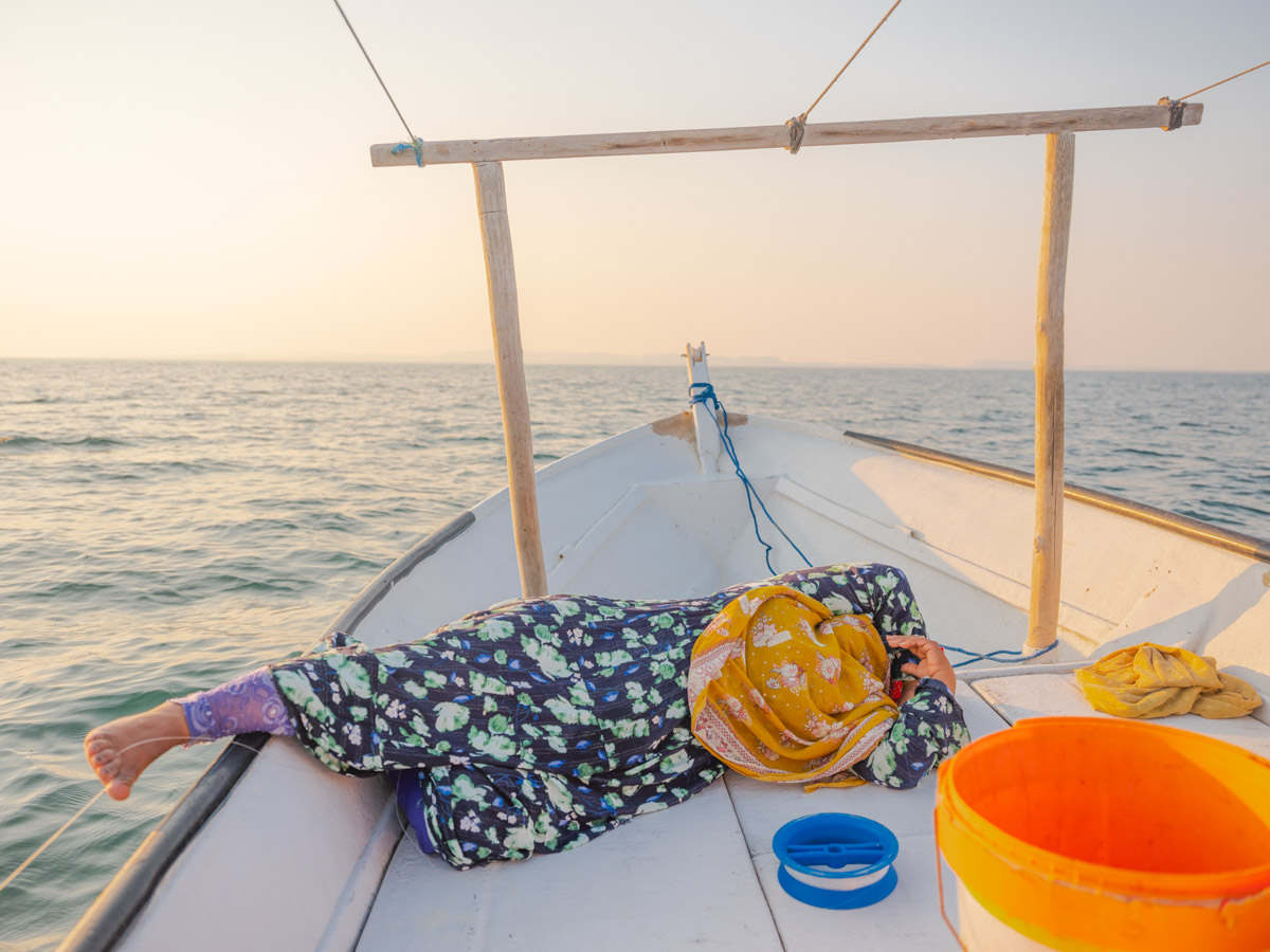 Dovevo guadagnare la loro fiducia e dimostrare loro che ero lì per raccontare la storia delle loro vite e non per essere una semplice spettatrice. Alloggiavo in un ostello vicino alle loro case e trascorrevo le giornate seduta accanto alle loro bancarelle. Rimanevano ai loro piccoli stand, vendendo artigianato, cibo locale e conchiglie colorate, fino alle due o alle tre del pomeriggio. Poi chiudevano le bancarelle e preparavano le loro imbarcazioni a motore per la pesca. All’inizio, ho stretto amicizia con loro, spiegando che volevo documentare il loro coraggio e il loro stile di vita. A poco a poco, hanno iniziato ad avere fiducia in me e a lasciarmi entrare nei loro spazi privati. Sono stata persino invitata nelle loro case e, dopo anni di frequentazioni, si è formato un legame profondo tra noi.