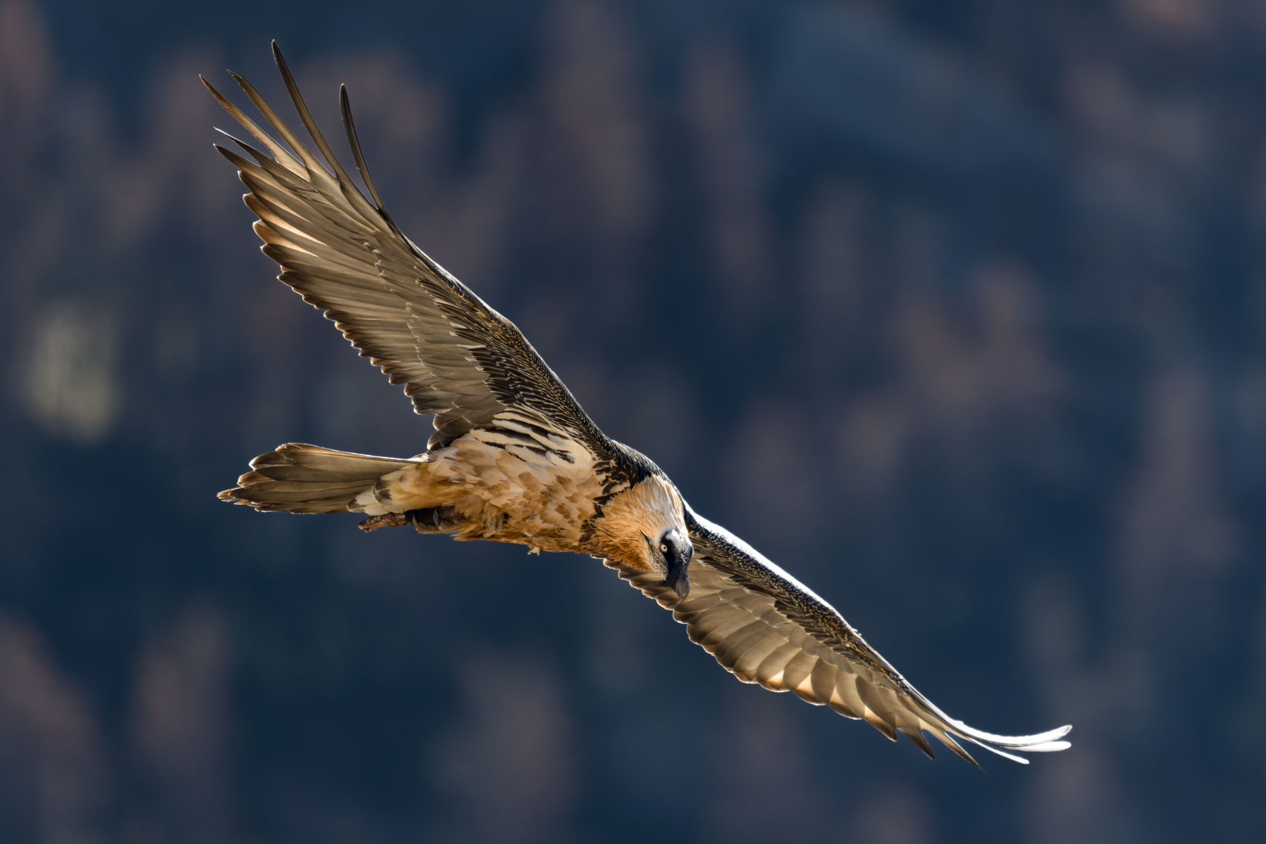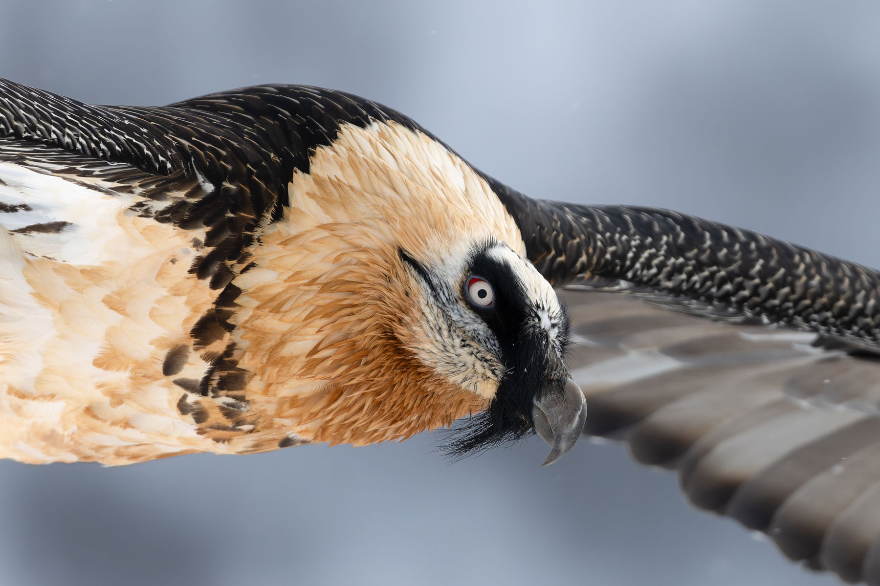 Primissimo piano di un gipeto adulto in volo. © Davide Diana