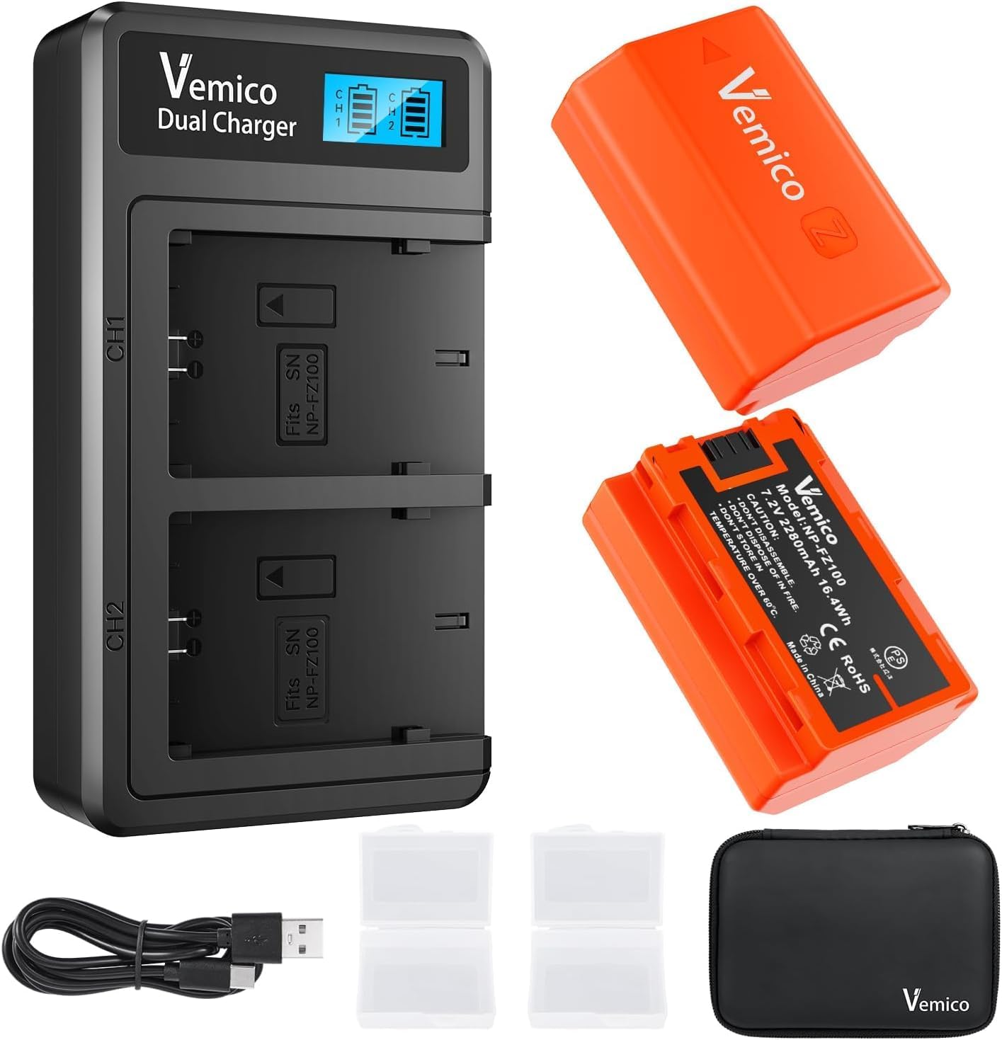 Vemico NP-FZ100 Batteria Caricabatterie Kit 2 X