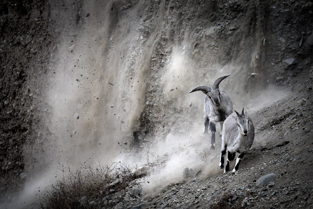 Zimo Zhu, fotografo naturalista cinese, ha ricevuto il Junior Award per una dinamica fotografia di due bharal (detti anche “pecore blu”), che percorrono il “sentiero dell’amore” in un ambiente pericoloso.
