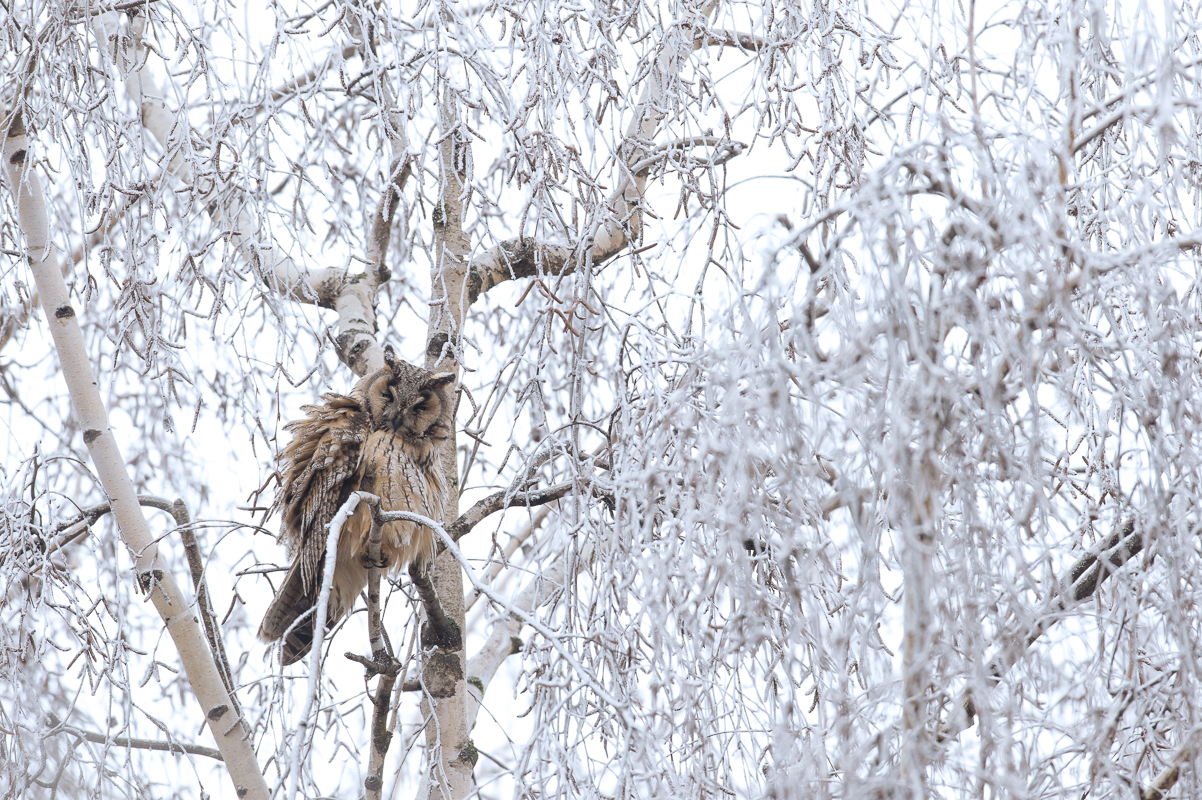 Silvano ha condotto la sua “caccia al gufo” con una reflex full frame Nikon D4, alternando due zoom: un 24-70mm f/2,8 a mano libera e un 500mm f/4 su treppiedi. Quando gli abbiamo chiesto consigli pratici per chi volesse prendere spunto dalla sua iniziativa ha ritenuto fondamentale rimarcare l’importanza di un abbigliamento idoneo alle basse temperature e di un’automobile adeguata a spostarsi in sicurezza su strade ghiacciate e inghiottite dalla nebbia.