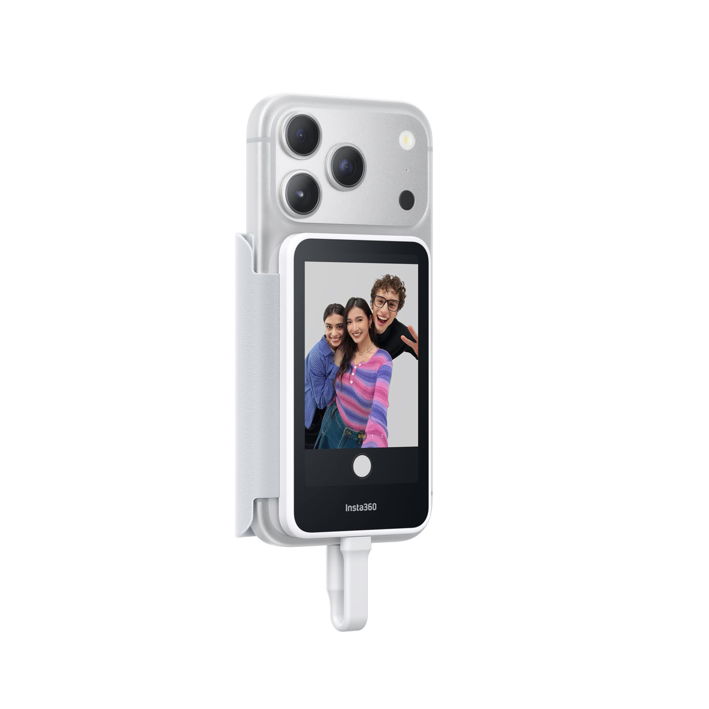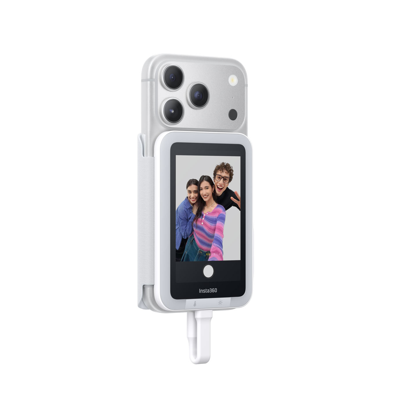 Il problema che Insta360 Snap cerca di risolvere è reale e diffuso: la fotocamera posteriore degli smartphone è sempre tecnicamente superiore a quella frontale, eppure viene raramente usata per selfie e vlog, semplicemente perché non ci si vede durante le riprese. La risposta di Insta360 — azienda specializzata in action cam e dispositivi di ripresa a 360° — è un piccolo display touch da 3,5 pollici che si aggancia magneticamente al retro del telefono, trasmettendo in tempo reale l’anteprima di ciò che la fotocamera posteriore sta inquadrando.