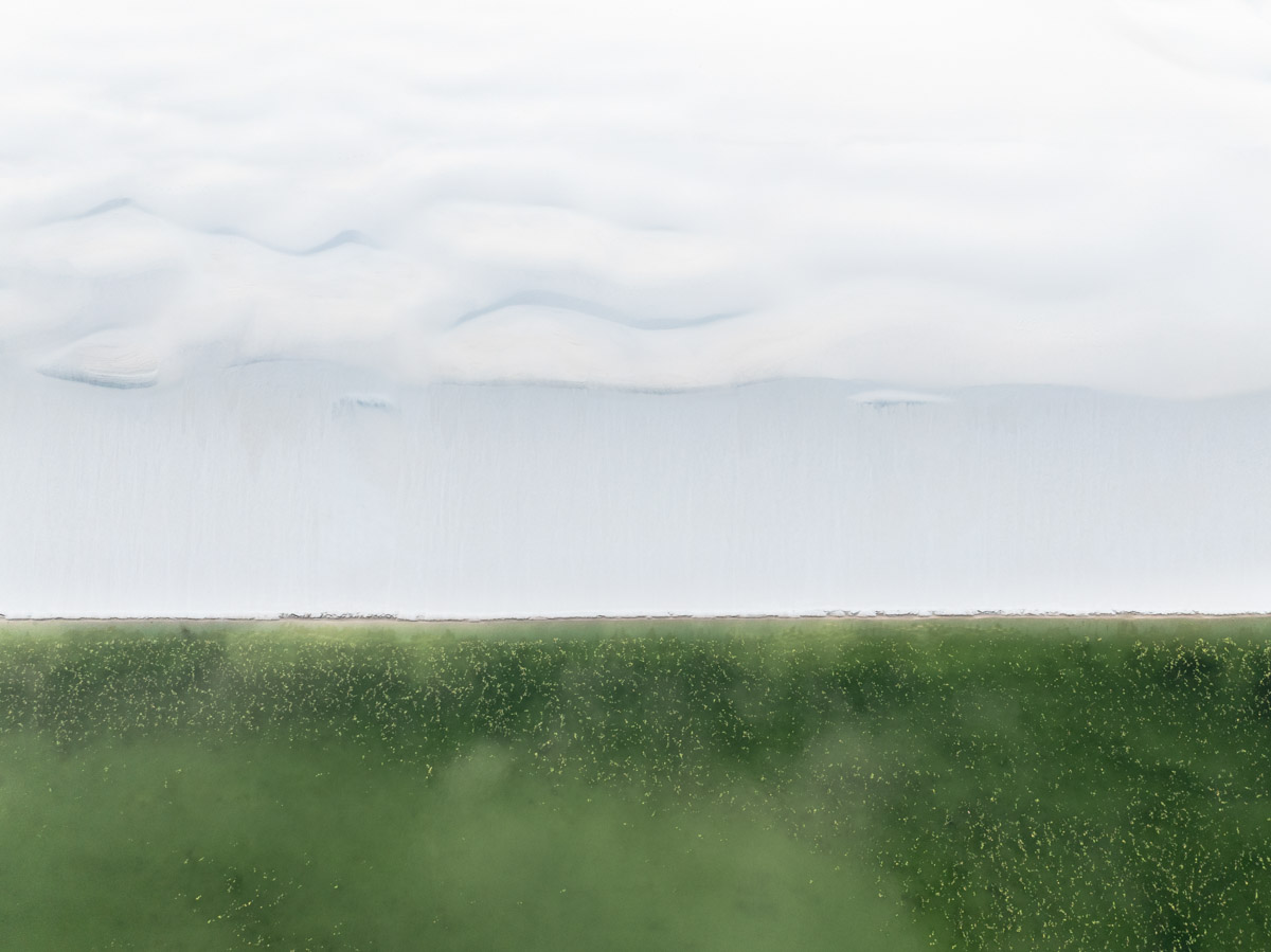 Il portfolio vincente include la ripresa aerea del letto di un fiume brasiliano invaso da piante in decomposizione che creano splendidi disegni; una fila di alberi spogli in un sereno scenario innevato dei fiordi norvegesi; una candida duna della Death Valley smossa dal vento e una seconda ripresa aerea (stavolta realizzata con un drone piuttosto che a bordo di un Cessna). Quest’ultimo scatto è sicuramente il più curioso: come fa notare lo stesso autore, chi non dovesse capire al volo che si tratta di una fotografia zenitale potrebbe vederci un campo sotto la pioggia di un temporale prima di capire che – di fatto – si tratta del punto in cui le dune incontrano l’acqua verde di un fiume.