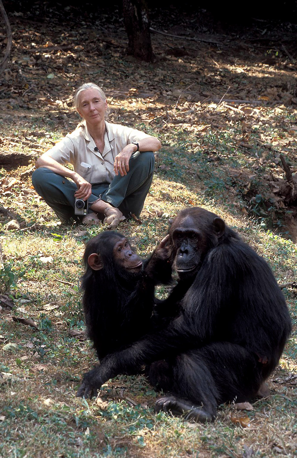 Considerata una delle più grandi ambientaliste del nostro tempo, Jane Goodall ha conquistato fama mondiale e riconoscimento scientifico osservando e descrivendo il comportamento degli scimpanzé dell’Africa Orientale, primati capaci di fabbricare e usare utensili, di cibarsi di carne, di compiere danze sotto la pioggia e di impegnarsi in forme di conflitto organizzato.