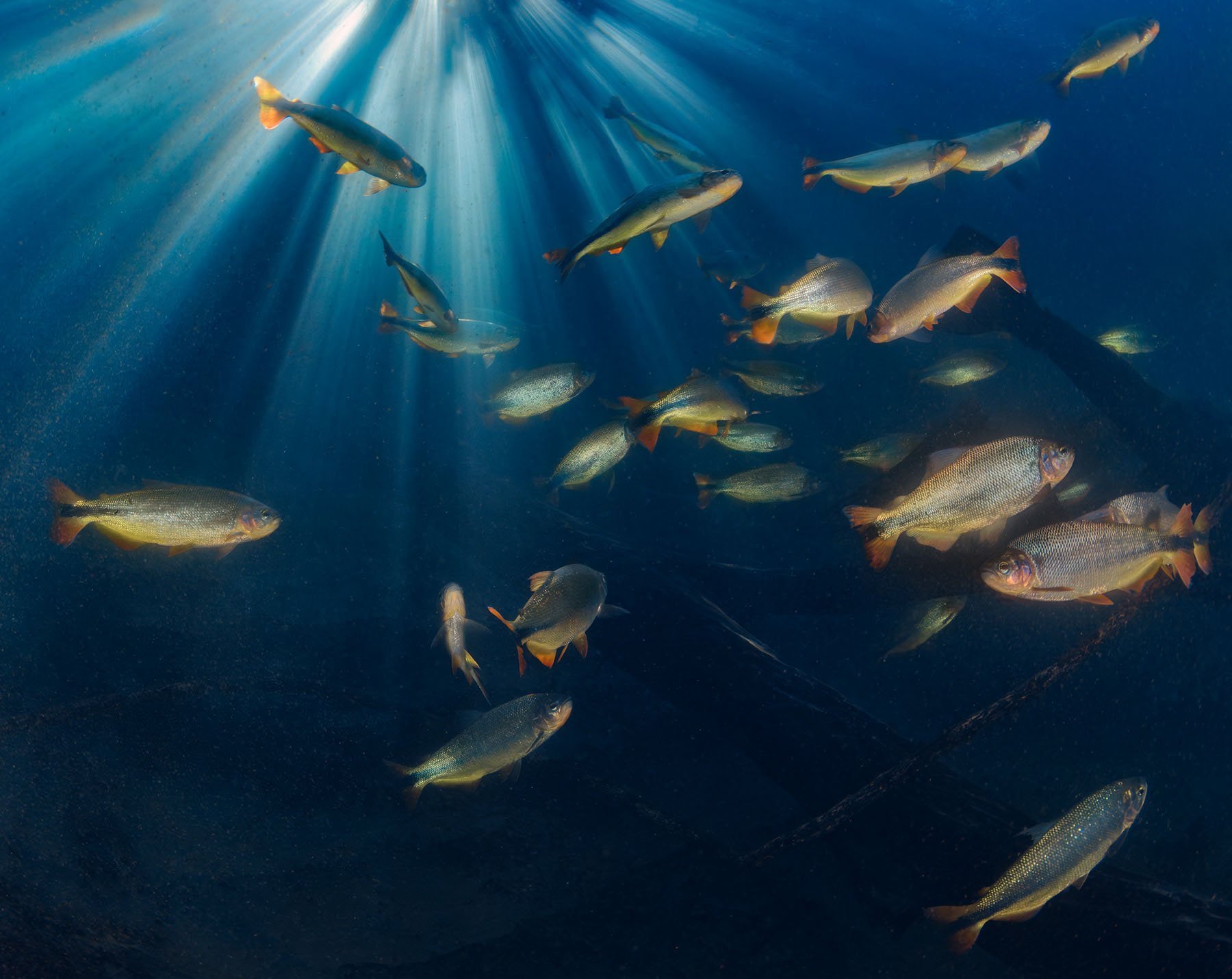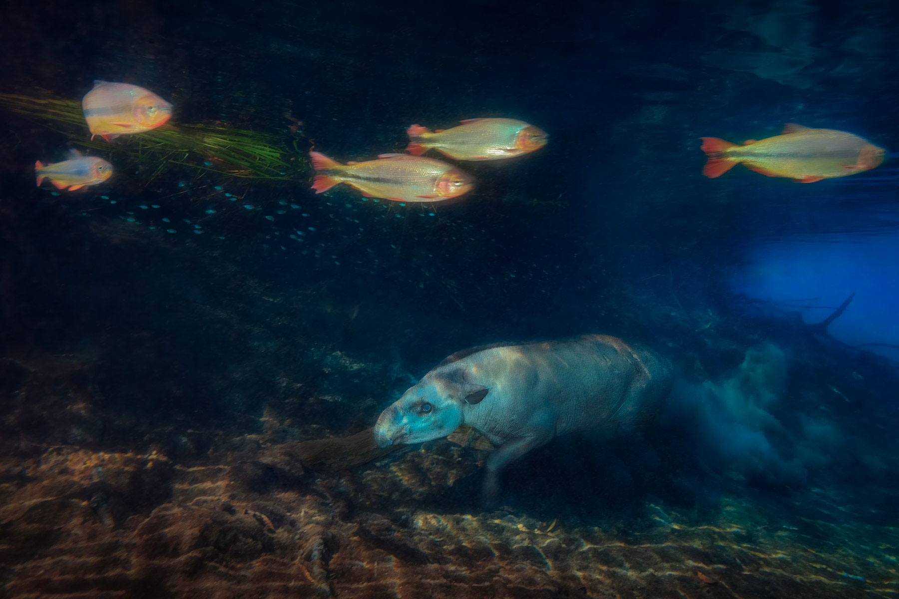 Nella serie di scatti di Marcio Cabral i colori vivaci, i raggi del sole che si fanno strada sott’acqua e le specie inaspettate che si aggirano sotto la superficie – contornate da lucenti gruppi di piraputanga e altri pesci – scrivono un racconto visivo incantevole quanto didattico, che ci fa riassaporare il gusto, quasi dimenticato, della natura selvaggia che prospera indisturbata.