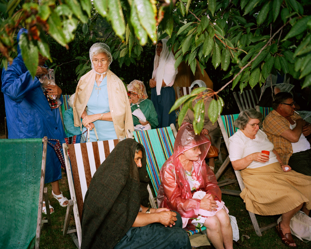 “Essendo molto affezionata alle opere in bianco e nero più elegiache di Martin a Hebden Bridge e in Irlanda, i colori sgargianti delle sue immagini mi hanno scioccata. Ma ho capito che si trattava di un lavoro straordinario. Quando la mostra è stata inaugurata alla Open Eye Gallery di Liverpool nell’inverno del 1985, gli ospiti si sono vestiti in modo appropriato, con cappelli da pioggia, costumi da bagno, materassini gonfiabili e impermeabili. Nessuno batté ciglio davanti alle immagini: New Brighton era proprio così. È un fatto ben documentato che la reazione alla mostra alla Serpentine fu piuttosto diversa”.