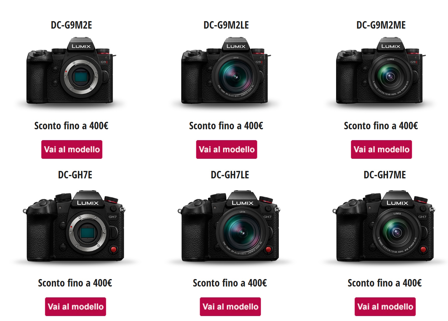 Gli sconti sono molto consistenti e possono arrivare a 900 euro su alcuni modelli di mirrorless 35mm e per le ottiche raddoppiano se l’acquisto è contestuale a quello di un corpo Lumix S.