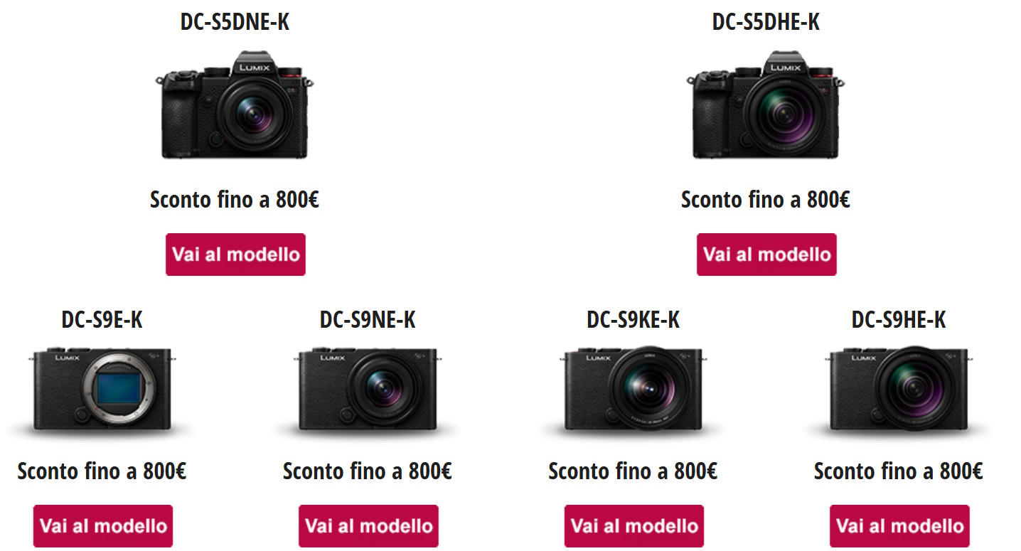 Molto interessante anche la Lumix S9, che beneficia dello stesso sconto di 800 euro, anche per le versioni colorate.