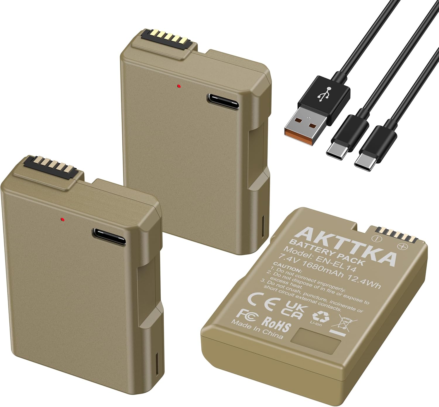 AKTTKA EN-EL14 Batterie 1.680mAh USB-C Nikon (Confezione da 3)