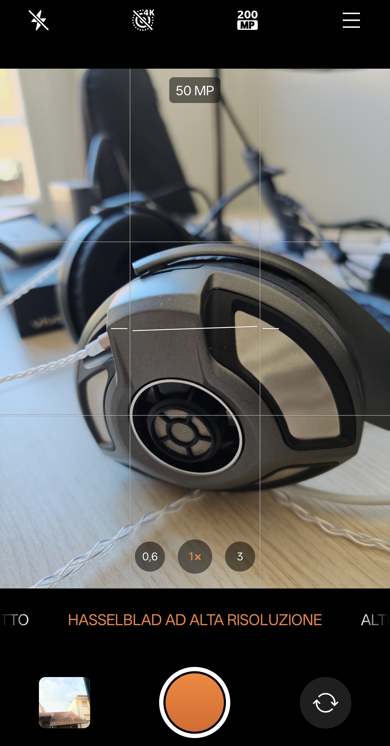 La massima risoluzione di 200 megapixel è ottenibile solo in JPEG nel pannello “Hasselblad alta risoluzione”. Qui è possibile selezionare solo le focali fisse 0,6x, 1x e 3x, scattando a 50 megapixel. Selezionando l’impostazione 200 megapixel, naturalmente, resta solo l’opzione del teleobiettivo 3x.