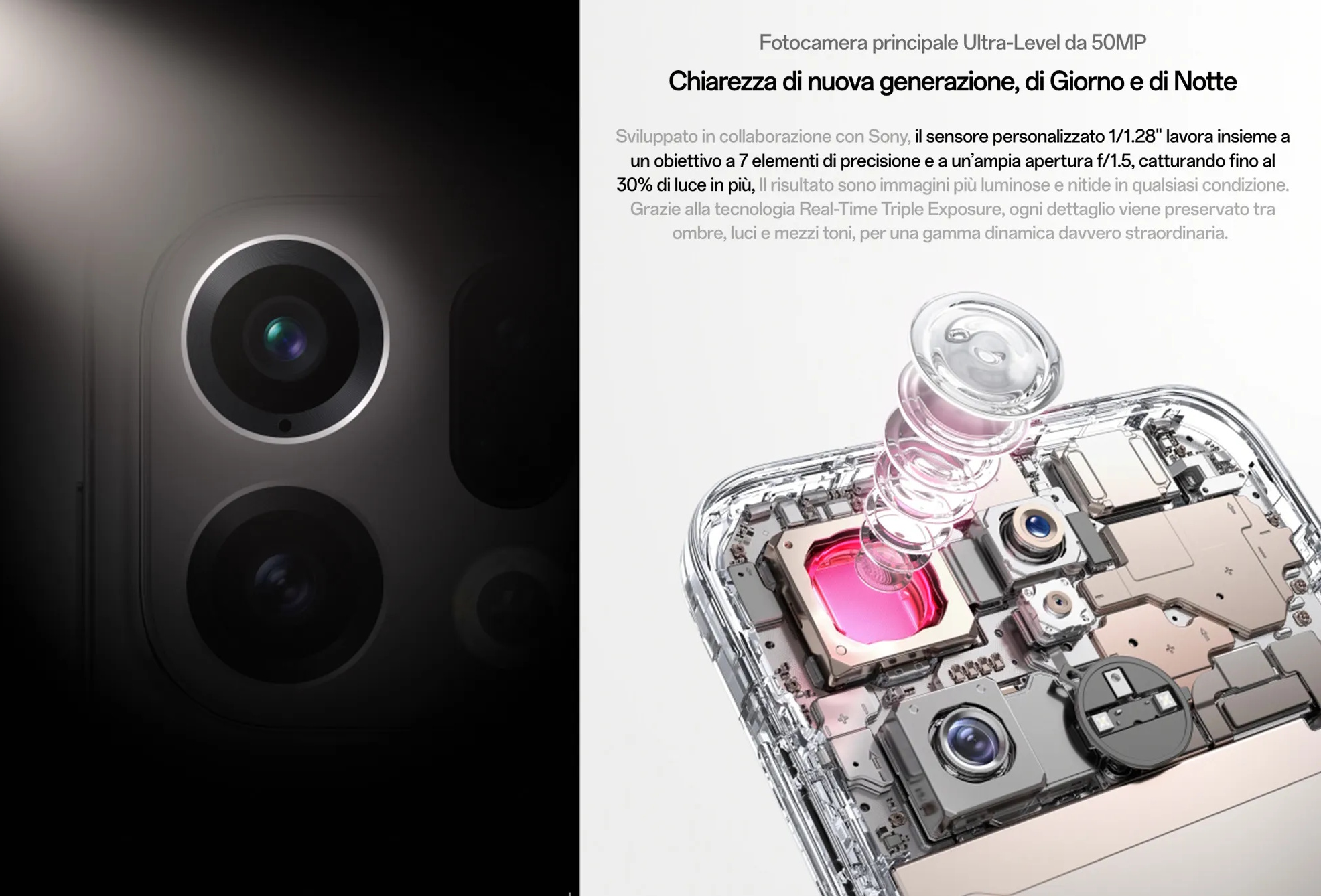 Modulo principale: 1/1,28" e 50MP, 23,4mm f/1,5 equivalente