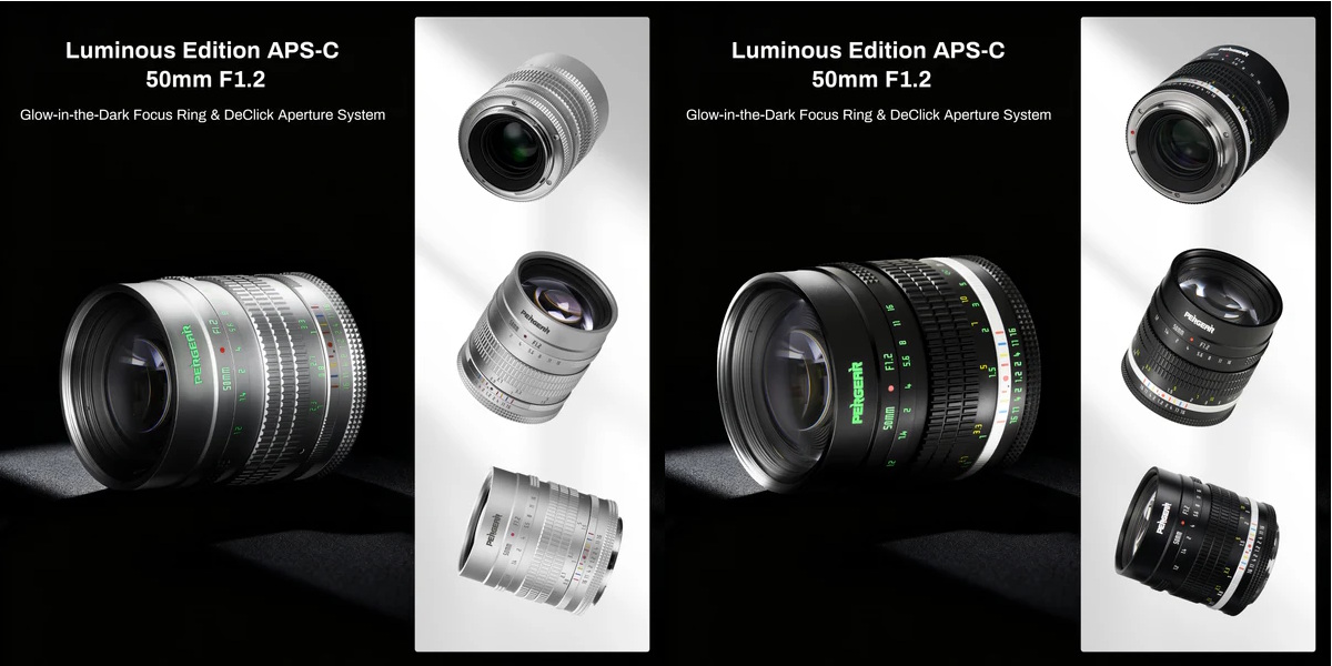 Il Pergear 50mm F1.2 APS-C in versione Sony E è invece già disponibile in edizione con cifre fosforescenti. Anche questo si può acquistare in nero o argento.