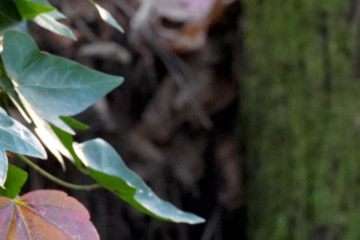 Se si vuole la massima qualità possibile anche in 4k/60 è necessario sopportare un lieve crop, mostrato dalla prima coppia di immagini qui sopra. Se invece la priorità è l’angolo di campo, la A7V concede la registrazione sull’intero fotogramma tramite la funzione “AVP”, ma al costo di un lieve decadimento qualitativo limitato alle altissime sensibilità (sopra, un confronto tra due fotogrammi estratti da clip girate a 25.600 ISO).