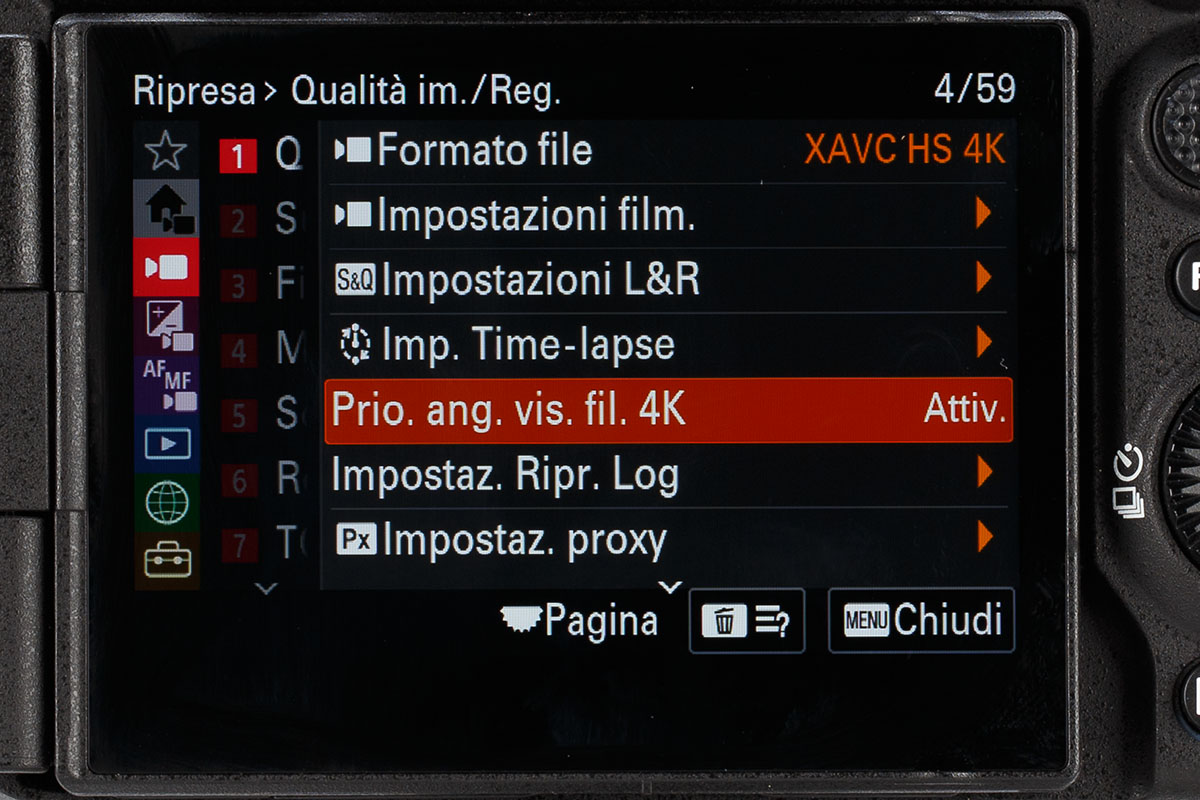 Per sfruttare tutto l’angolo di campo delle ottiche, e quindi la base 7K del sensore, nella A7 V è stata introdotta la funzione Angle of View Priority: secondo Sony, e le nostre prove lo confermano, questa funzione chiede come dazio un leggero aumento del rumore solo alle più alte sensibilità. Chi vuole il massimo della qualità potrà quindi disattivare la funzione AVP sopportando un modesto crop (come potete vedere nel raffronto che pubblichiamo in questo articolo).