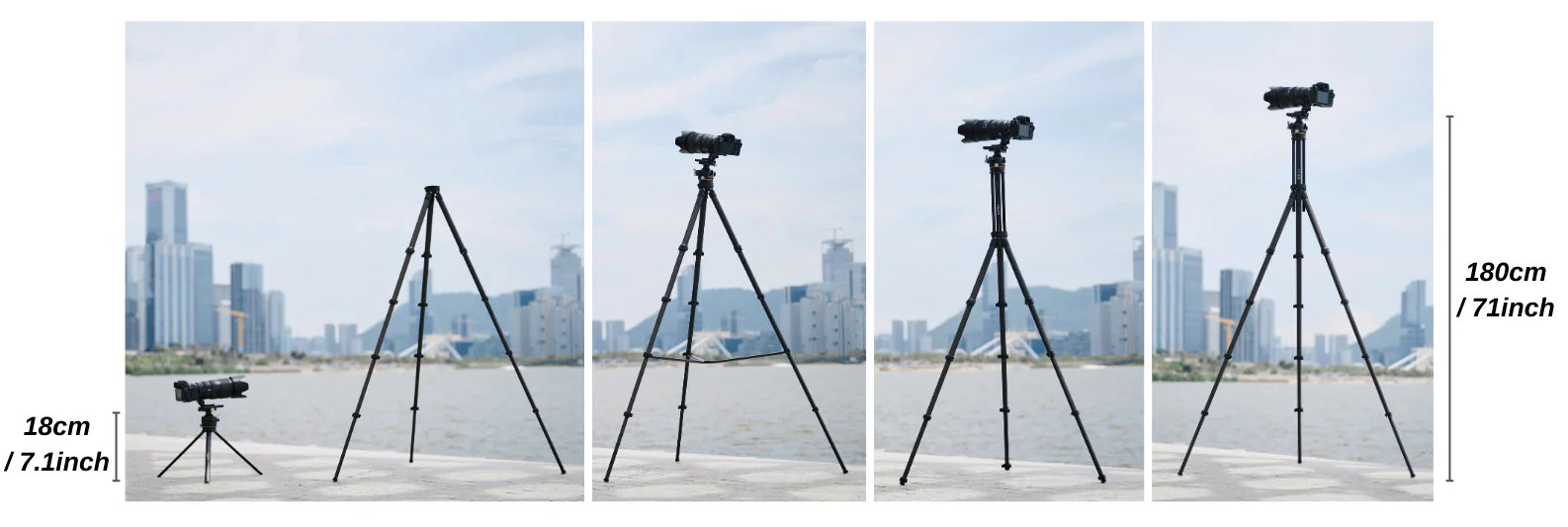 Tra i treppiedi che sono da tempo nella lista dei desideri ci sono quelli di Heipi Vision, giovane marchio cinese che è stato in grado di portare innovazione in questo settore. Il loro design a tripla colonna (al posto di una colonna centrale) permette di ottimizzare gli ingombri quando il treppiede è chiuso, ma offre anche la possibilità di avere un secondo supporto sempre a portata di mano, in quanto la colonna è estraibile e i supporti diventano a loro volta delle gambe.