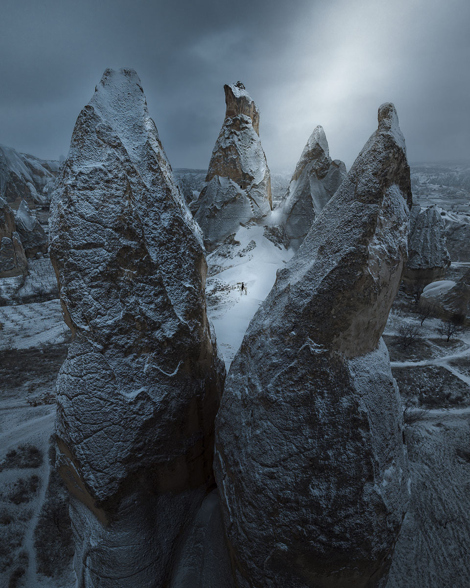 Il fotografo tedesco Dennis Schmelz, infine, ha vinto i Drone Photo Awards 2025 con The Lone Horseman, scattata in Cappadocia. Nella fotografia premiata, un cavaliere solitario è immortalato su uno sperone roccioso durante l’ora blu, con una suggestiva ripresa aerea sui paesaggi della Turchia.
