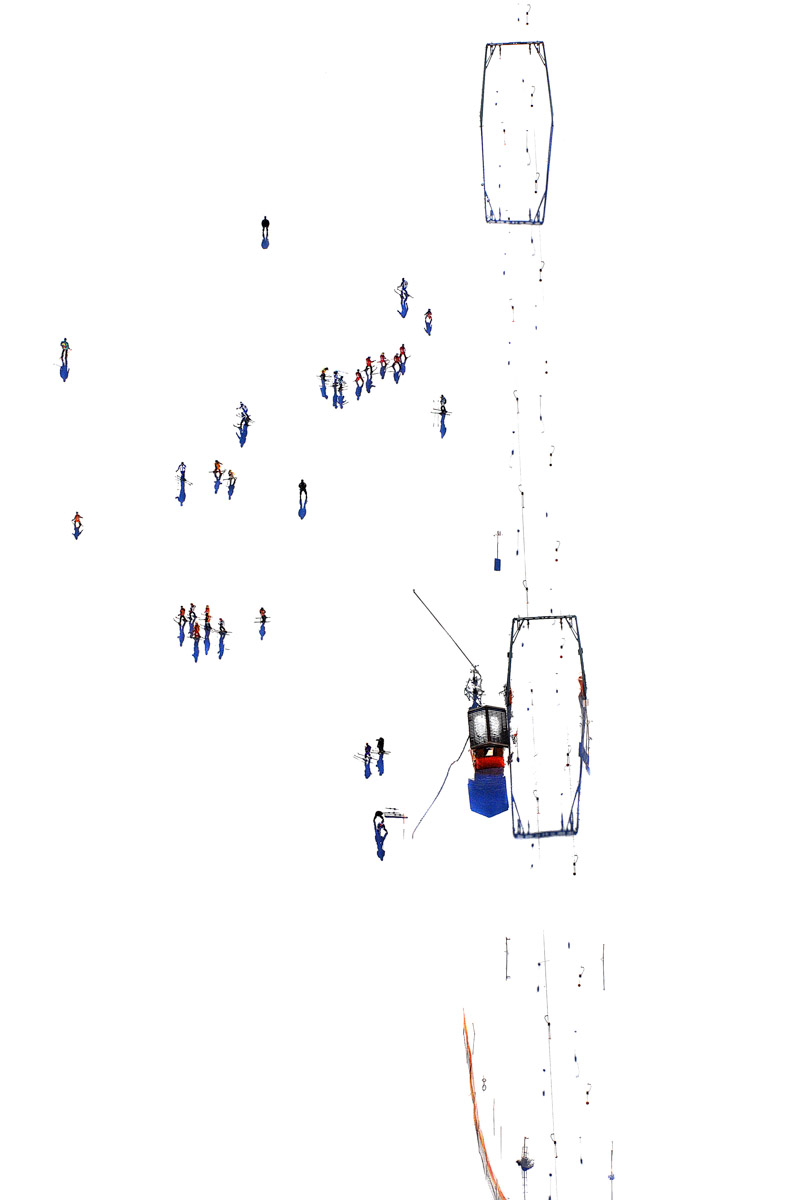 Alla Fabbrica del Vapore di Milano, infine, viene esposta la trilogia completa, inclusa la collezione Tracce – Lasciare che l’occhio squarti il paesaggio, il progetto più intimo dell’autore in cui la protagonista assoluta è la neve, definita dal fotografo “una tela d’artista pronta per essere utilizzata. La neve che si lascia segnare, disegnare. Sciatori come volontari o inconsapevoli autori. Tracce sormontano altre tracce formando una trama in continua mutazione”.